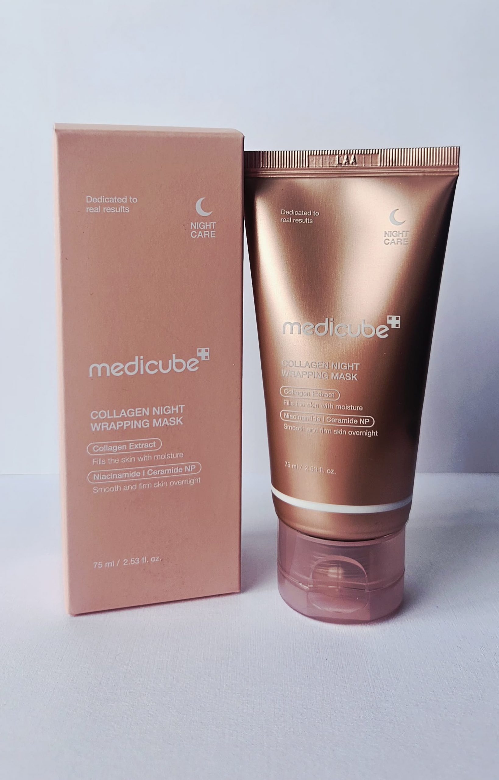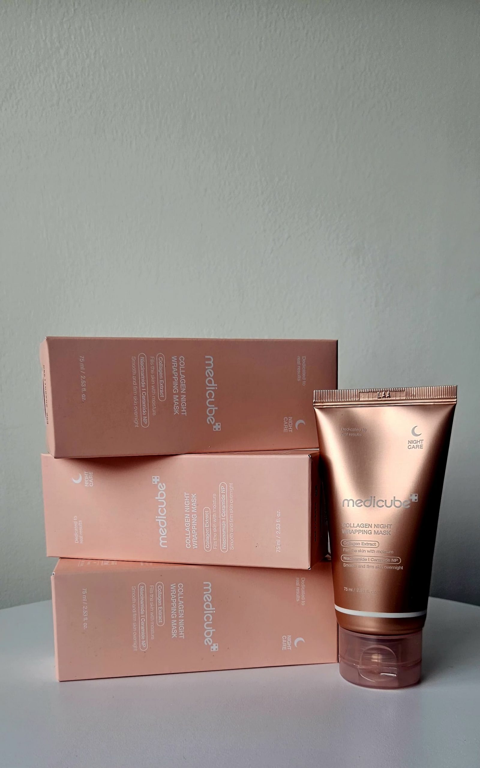 Mascarilla nocturna intensiva con colágeno para una piel firme y rejuvenecida. Despierta con una piel visiblemente más tersa, hidratada y luminosa gracias a la Collagen Night Wrapping Mask de Medicube, una mascarilla nocturna tipo “sleeping pack” diseñada para regenerar, reafirmar y revitalizar tu piel mientras duermes. Su fórmula avanzada está enriquecida con colágeno hidrolizado y activos reparadores que penetran profundamente durante la noche para brindar un efecto lifting y restaurador. Sella la humedad durante toda la noche, dejando la piel suave, rellena y revitalizada al despertar.